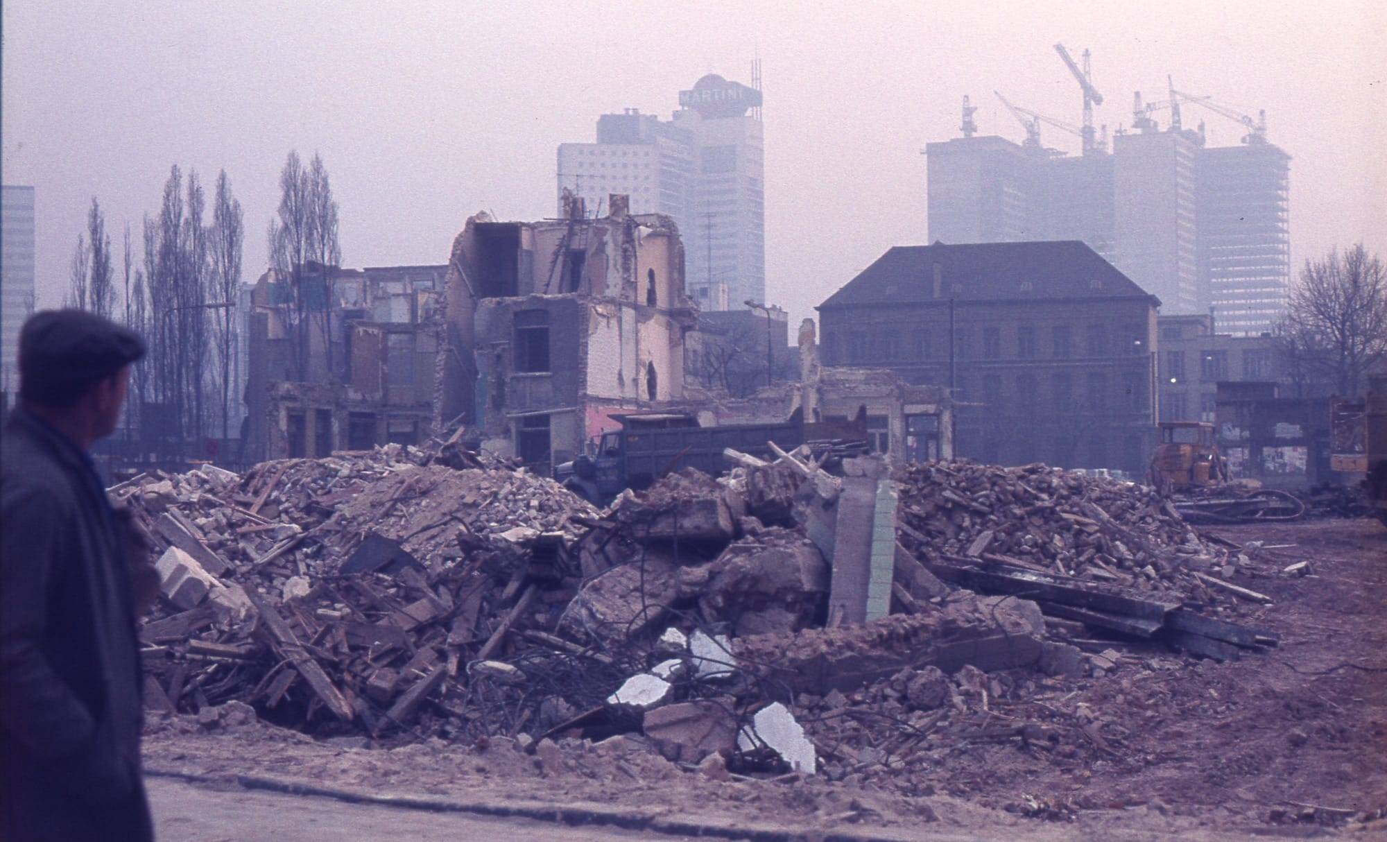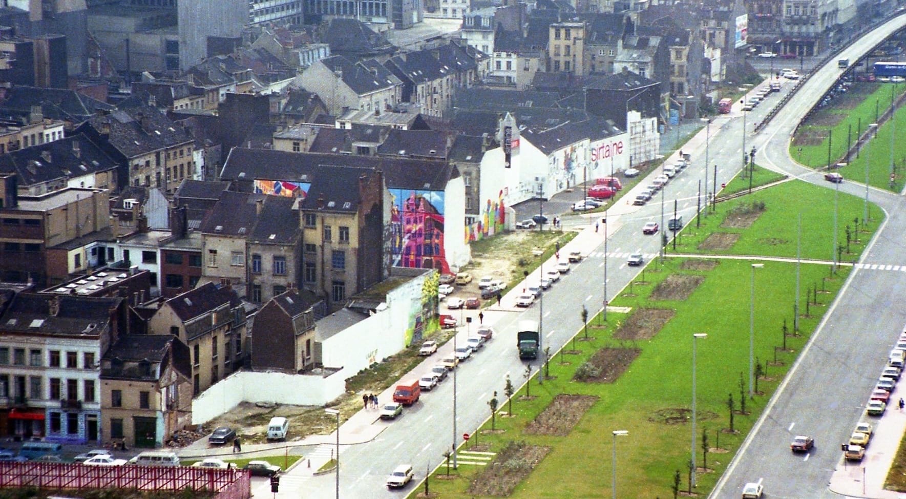 Anyone walking through Brussels' North Quarter today will mainly see gleaming office towers and wide avenues. But behind this backdrop lies a forgotten piece of urban history. During a walk with the ErfgoedApp , you ErfgoedApp how the neighborhood was once transformed into a desolate plain—and how art temporarily brought color and life to it.