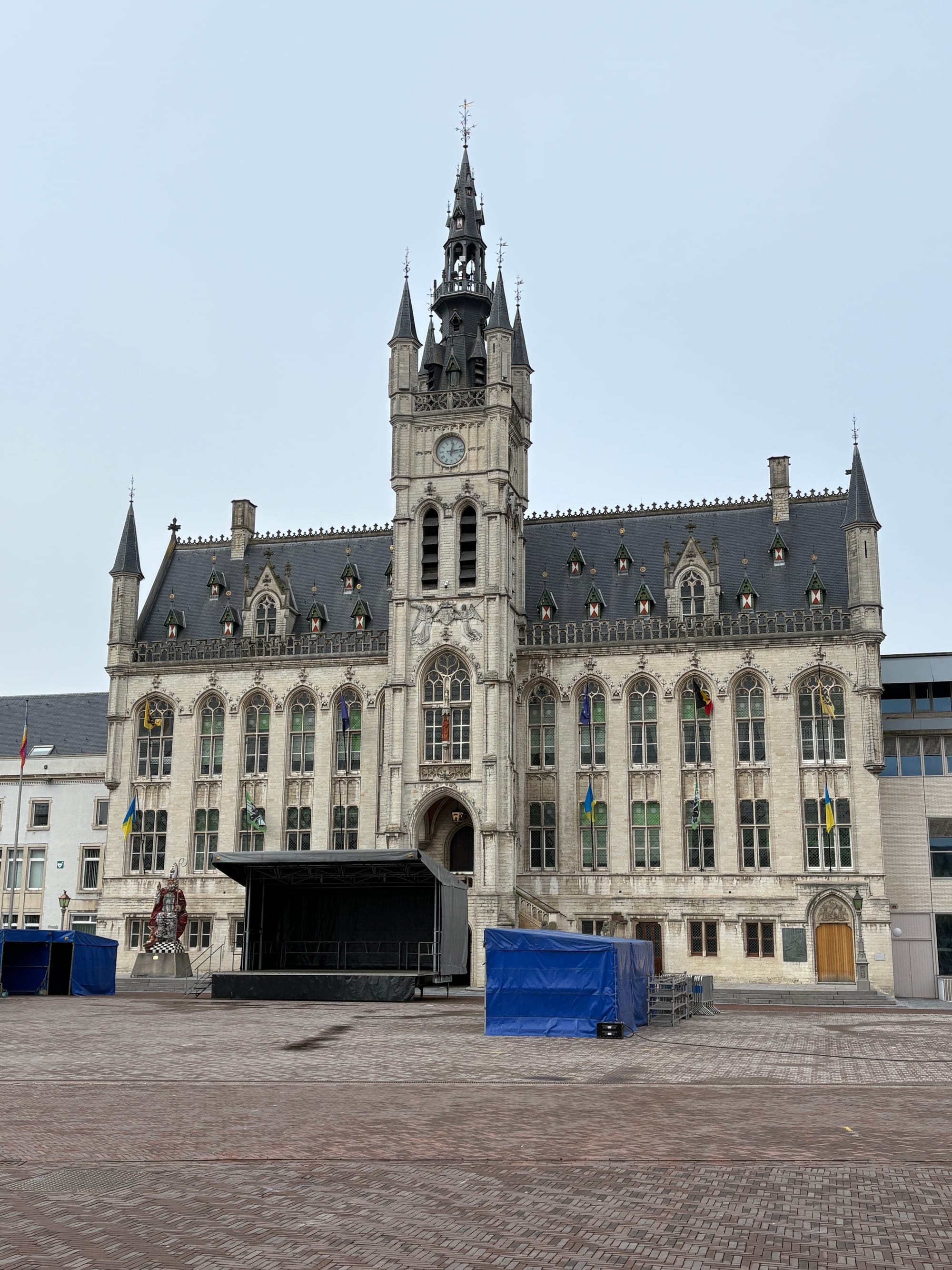 The Town Hall of Sint-Niklaas, the statue of Saint Nicholas in front of the Town Hall, and the Church of Saint Nicholas. © Brinthe Thys
